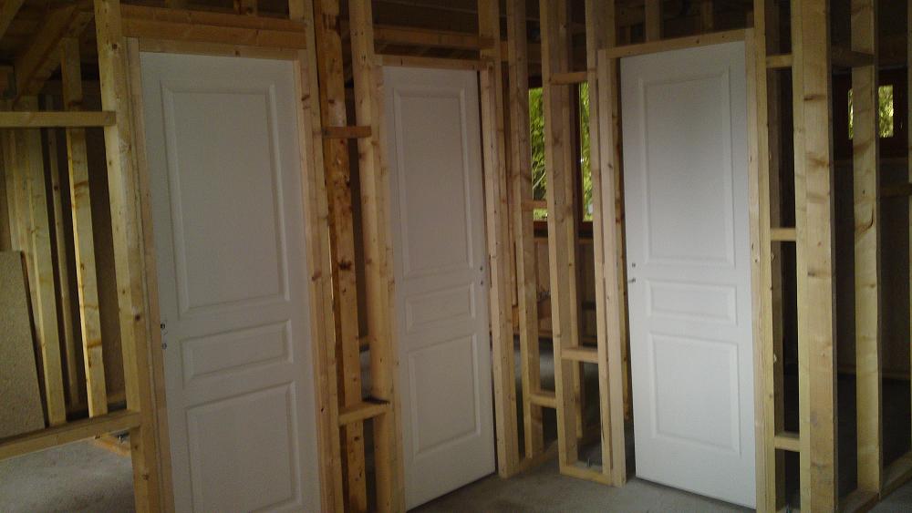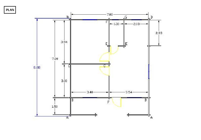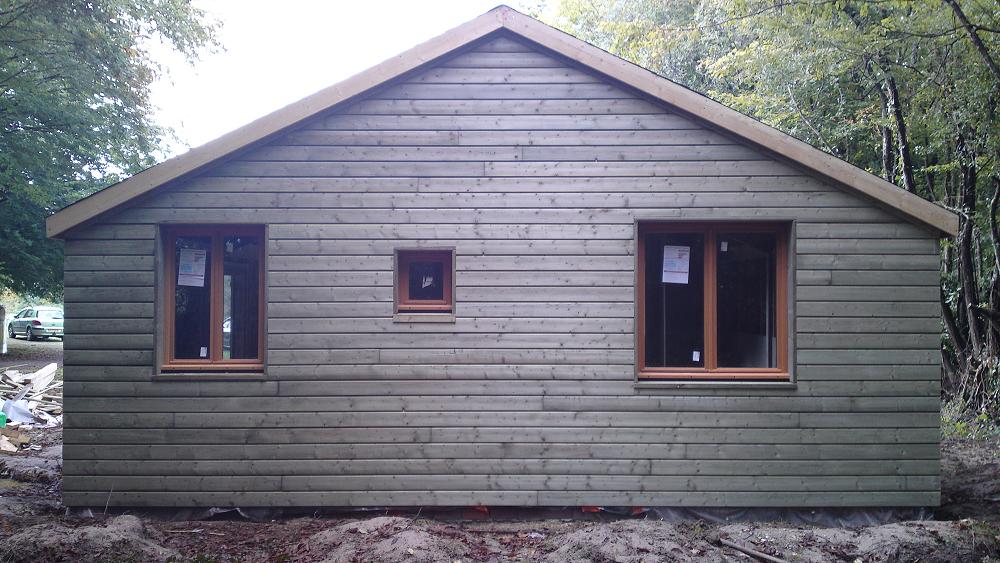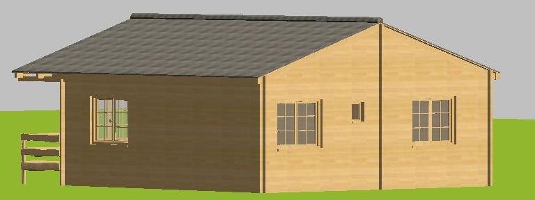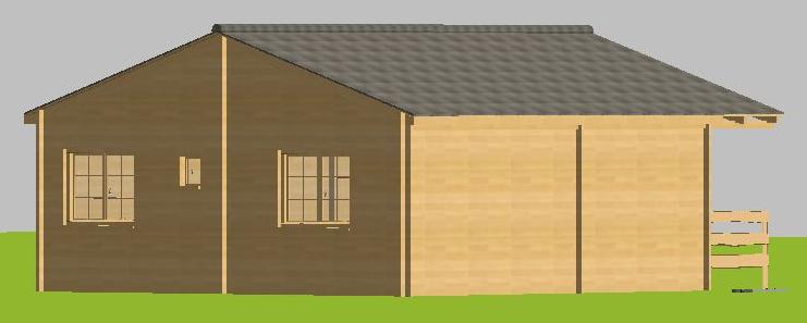 60m2-Plain Pied - Ossature 145*45mm + Bardage - 7m x 7m + avancé 1,50m Menuiseries en Bois Exotique, Portes Intérieures, Prix = 12900 en KIT, 13000 Livré, 17400 Livré+Montage |